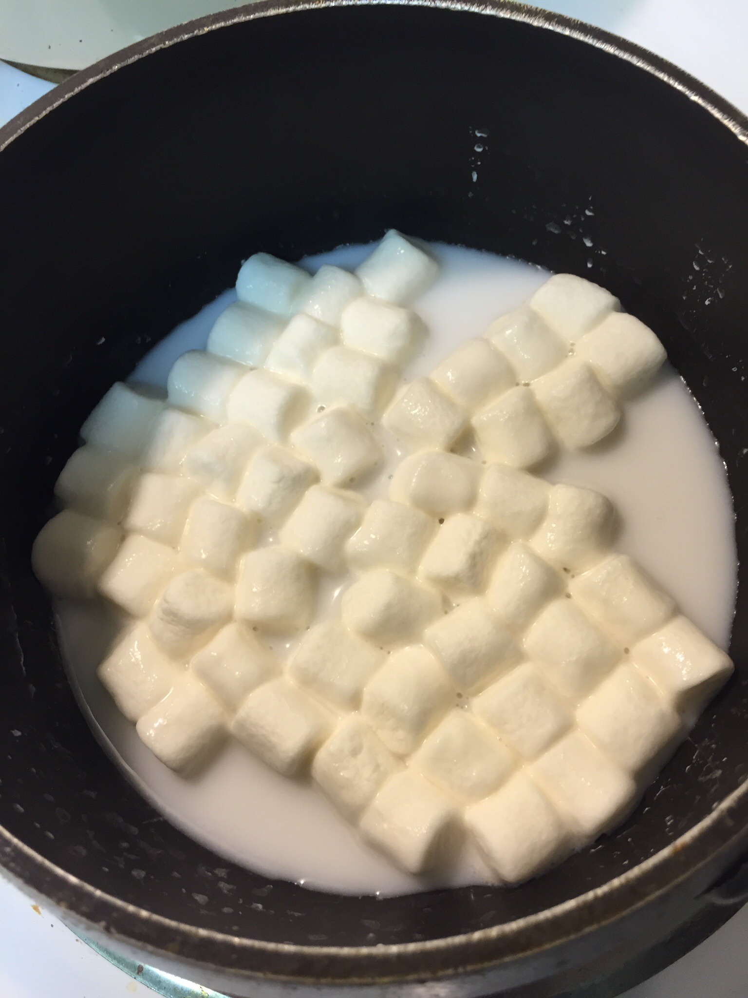 - Stir and scrape the sides of the pot until the marshmallows are completely melted
