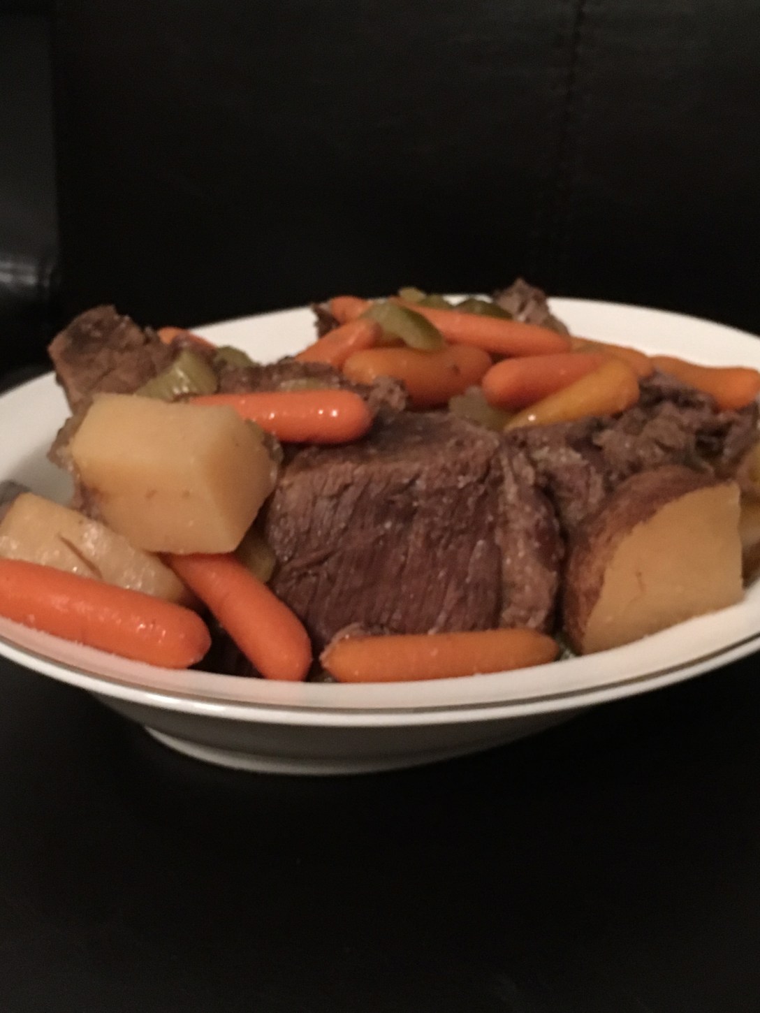 Even though it seems like a lot of salt in the ingredients, this roast isn’t salty at all because the Apple juice balances all of that out. You can eat this roast over rice, but I prefer to have it with bread or a roll so I can sop up all of the juices and enjoy all of its goodness.