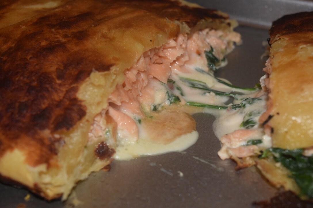 Seriously who in the world wraps salmon in Pastry? I’ve been seeing everyone do it on the internet and as I’ve said before, sometimes I tend to bandwagon hop. So here’s my stab at taking something totally healthy and wrapping it with the most unhealthy thing I could find.